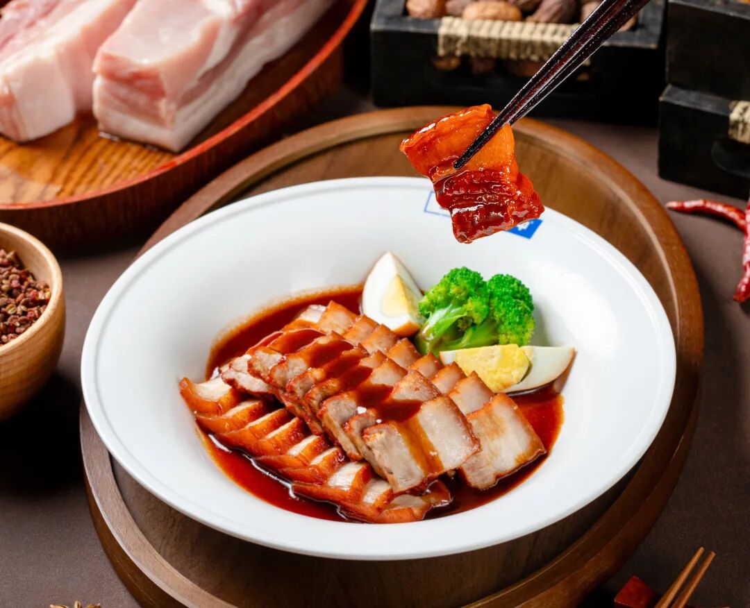 荣获【温州名菜】称号,精选三层无话,肥而不腻,3小时文火慢炖,让每一块肉吸满了卤汁的精华,红卤透亮香四溢,金牌口感吃不腻!