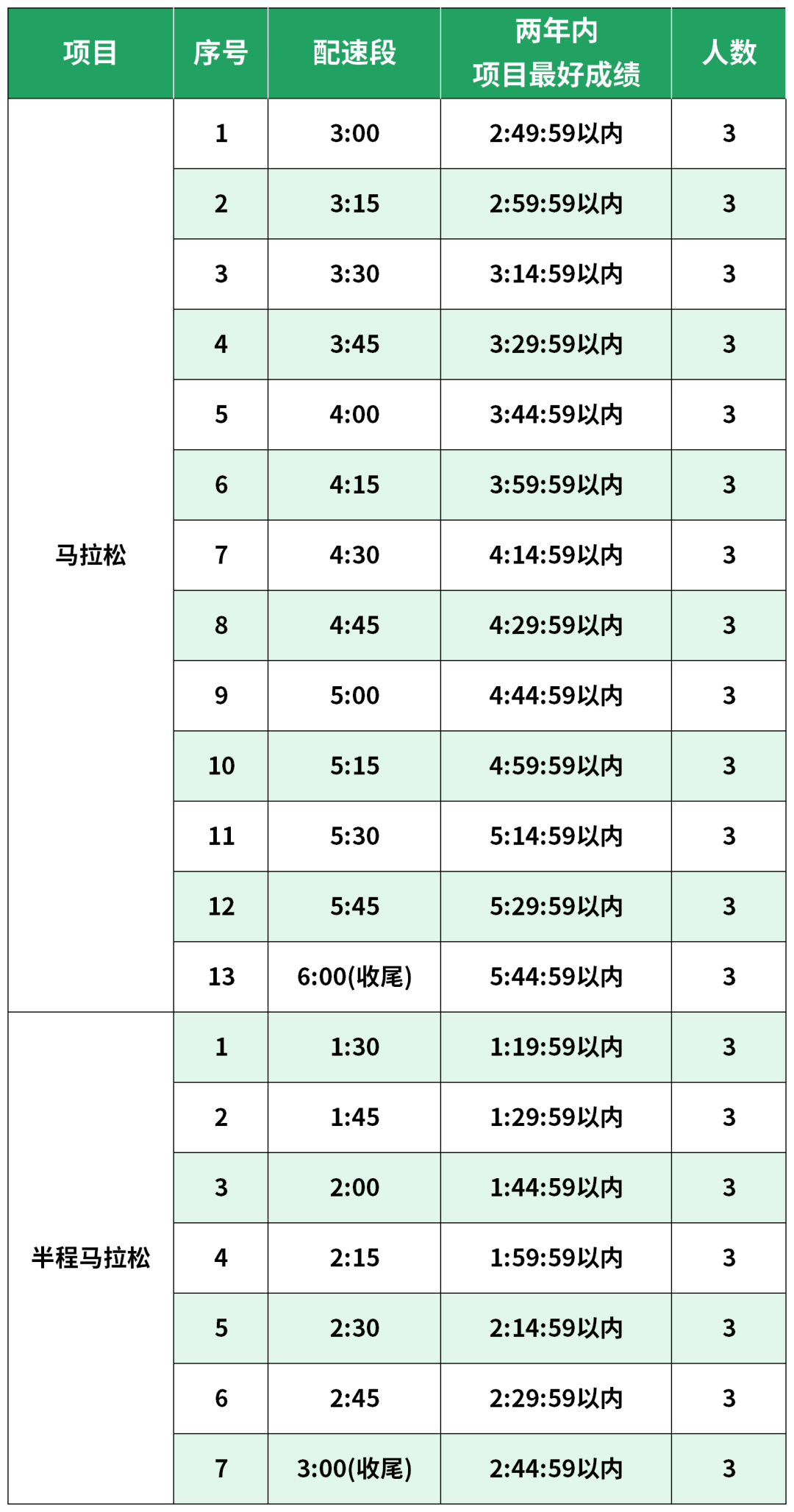 ①马拉松项目300、半程马拉松项目130配速段:成绩高于申请组别成绩10分钟以上;